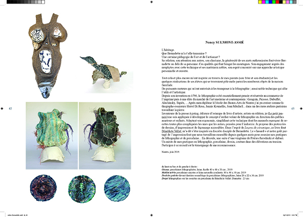 Livre documentaire de JeanMarie Lhôte sur l’enseignement à Amiens de Bernadette SulmontLhôte, professeure de céramique de 1957 à 1994. Il a invité ses anciens élèves ou héritiers de sa pédagogie à se présenter : trente sept ont répondu à l’appel… Un hommage certain à cette femme « du tonnerre ».